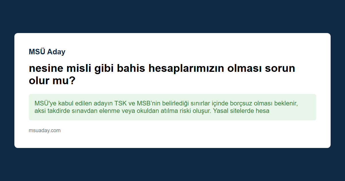 Kısa cevap: MSÜ'ye kabul edilen adayın TSK ve MSB’nin belirlediği sınırlar içinde borçsuz olması beklenir, aksi takdirde sınavdan elenme veya okuldan atılma riski oluşur. Yasal sitelerde hesap sahibi olmak teknik olarak engel değildir, ancak bir "asker adayı" profiline zarar vereceği için bu hesapları kapatmanız ve bu alışkanlıktan tamamen uzaklaşmanız en doğrusudur.