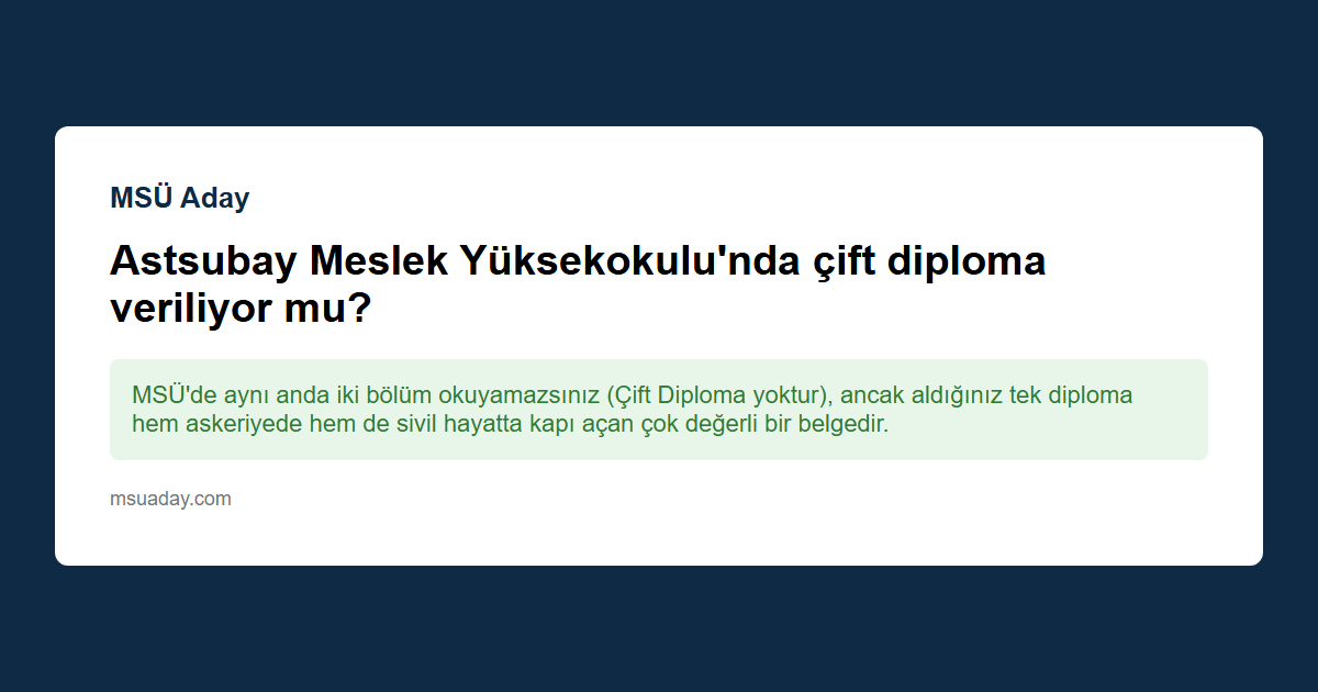 Kısa cevap: MSÜ'de aynı anda iki bölüm okuyamazsınız (Çift Diploma yoktur), ancak aldığınız tek diploma hem askeriyede hem de sivil hayatta kapı açan çok değerli bir belgedir.