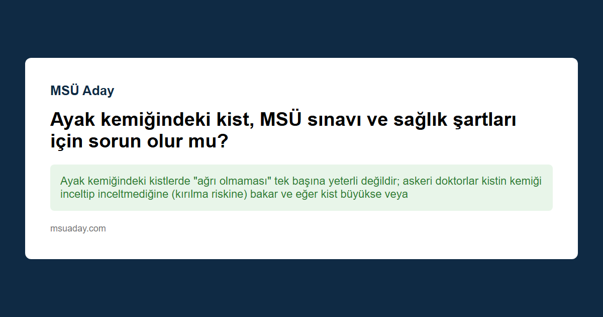 Kısa cevap: Ayak kemiğindeki kistlerde "ağrı olmaması" tek başına yeterli değildir; askeri doktorlar kistin kemiği inceltip inceltmediğine (kırılma riskine) bakar ve eğer kist büyükse veya cerrahi gerektiriyorsa elenme sebebidir.