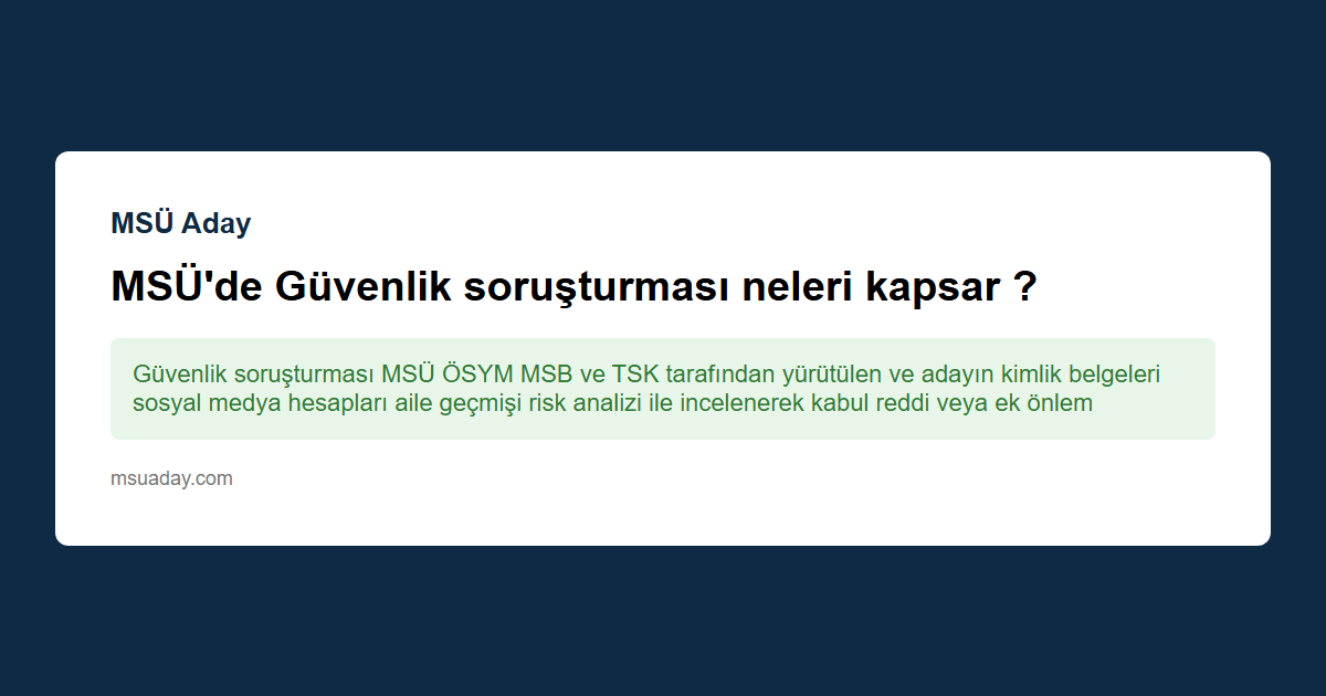 Kısa cevap: Güvenlik soruşturması MSÜ ÖSYM MSB ve TSK tarafından yürütülen ve adayın kimlik belgeleri sosyal medya hesapları aile geçmişi risk analizi ile incelenerek kabul reddi veya ek önlemler kararlaştırılan resmi bir süreçtir.