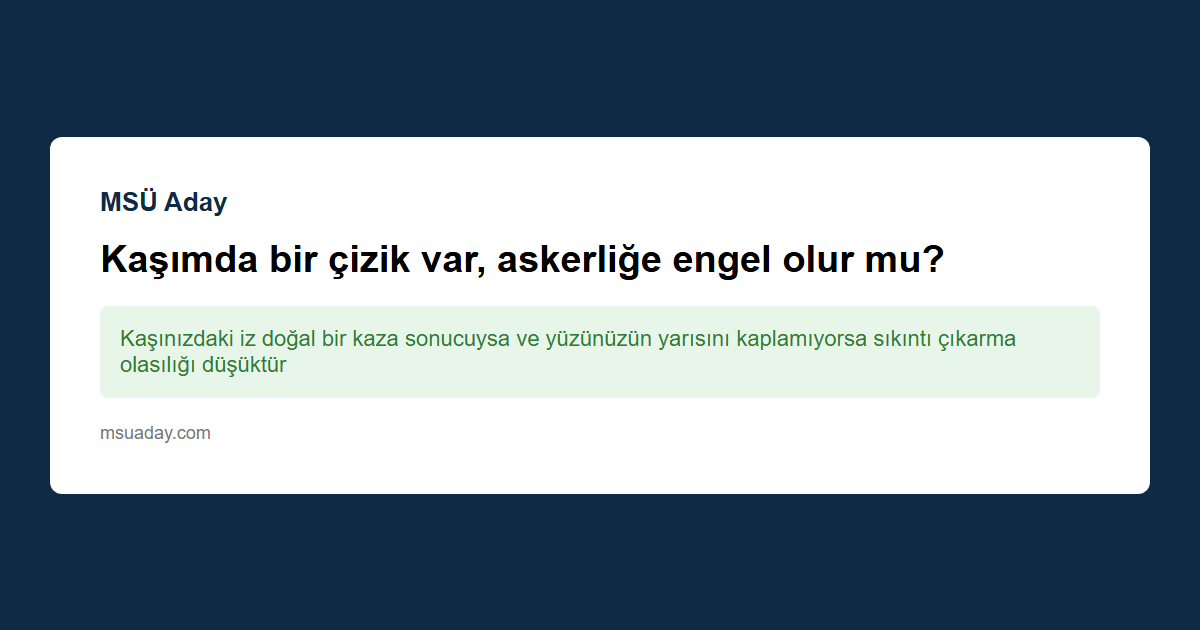 Kısa ve net cevap: Hayır, kaşınızdaki küçük bir çizik, dikiş izi veya yarık tek başına askerliğe veya askeri öğrenci (MSÜ) olmaya engel değildir.