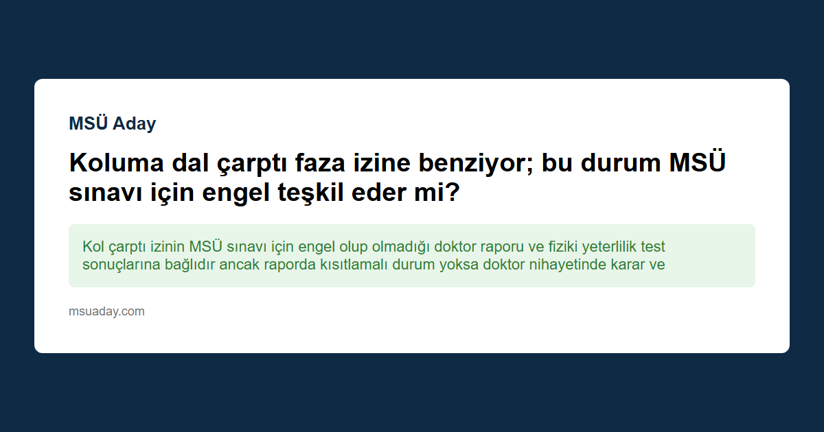 Kısa cevap: Kol çarptı izinin MSÜ sınavı için engel olup olmadığı doktor raporu ve fiziki yeterlilik test sonuçlarına bağlıdır ancak raporda kısıtlamalı durum yoksa doktor nihayetinde karar verilir.