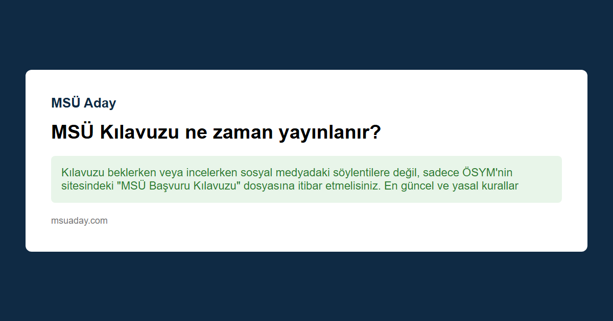 Kılavuzu beklerken veya incelerken sosyal medyadaki söylentilere değil, sadece ÖSYM'nin sitesindeki "MSÜ Başvuru Kılavuzu " dosyasına itibar etmelisiniz. En güncel ve yasal kurallar sadece orada yazar.