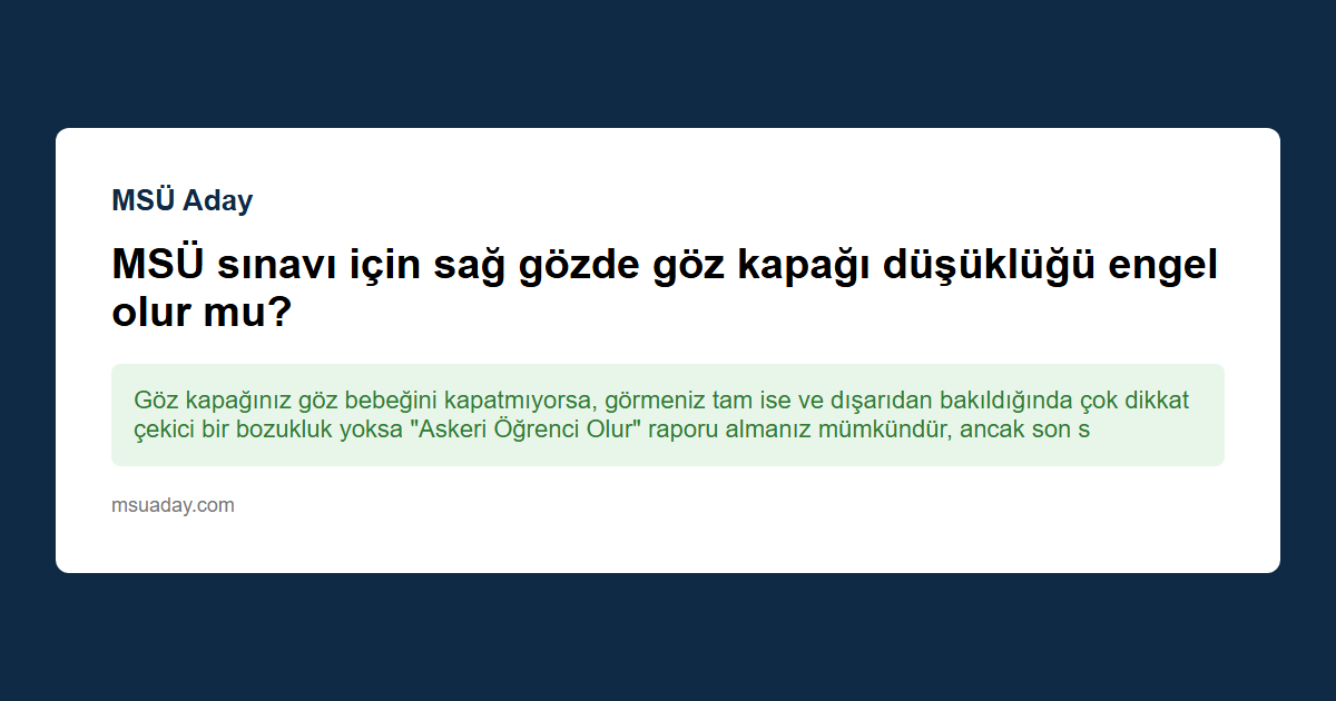 MSÜ askeri öğrenci temin faaliyetlerinde sağlık aşaması, TSK Sağlık Yeteneği Yönetmeliği'ne göre yürütülür ve göz kapağı düşüklüğü (Pitozis) konusuna oldukça hassas yaklaşılır. Bu durumun engel olup olmadığına karar verilirken doktorun baktığı kriterler şunlardır:
