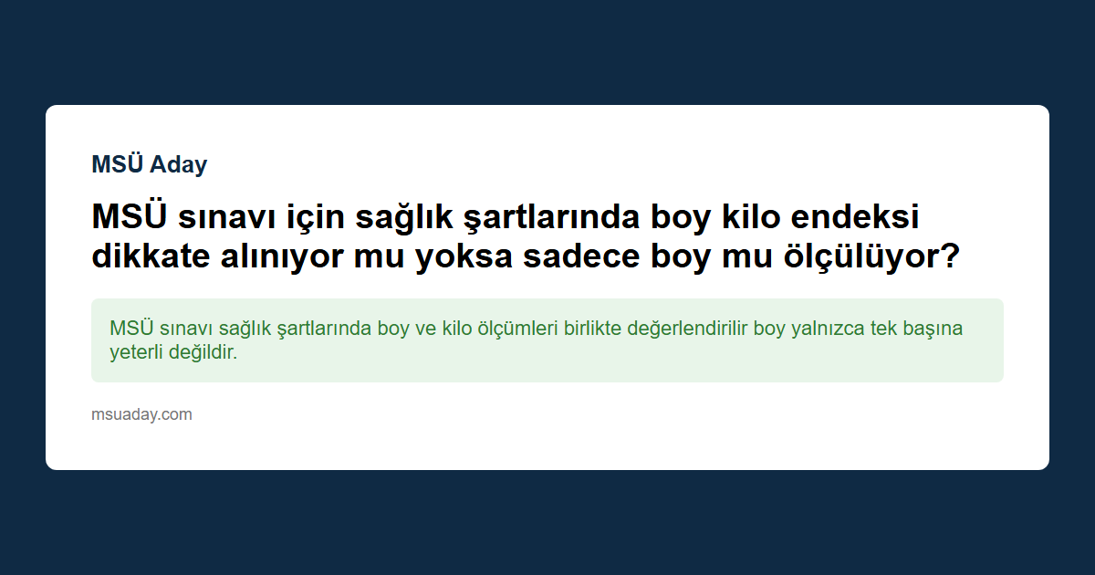 Kısa cevap: MSÜ sınavı sağlık şartlarında boy ve kilo ölçümleri birlikte değerlendirilir boy yalnızca tek başına yeterli değildir.