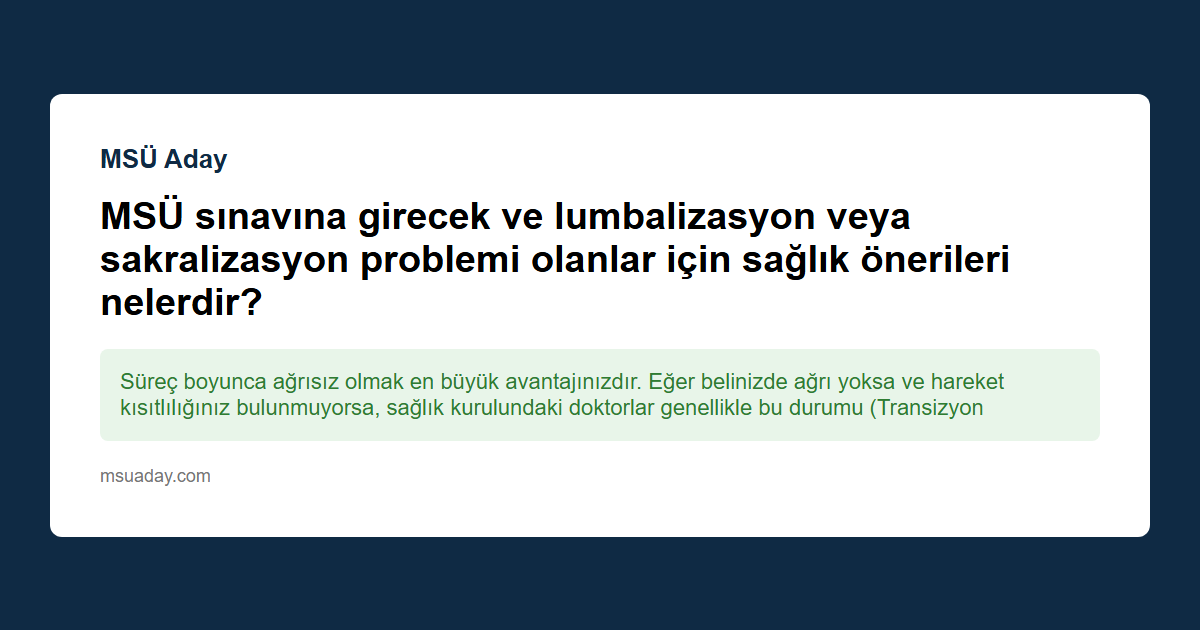 MSÜ sınavına hazırlanan bir aday için Lumbalizasyon (5. bel omurunun kuyruk sokumu kemiği gibi davranması) veya Sakralizasyon (1. kuyruk sokumu kemiğinin bel omuruyla kaynaşması), hem sağlık mülakatı (Röntgen) aşamasında hem de Fiziki Yeterlilik Testi (Spor) aşamasında kritik bir konudur.