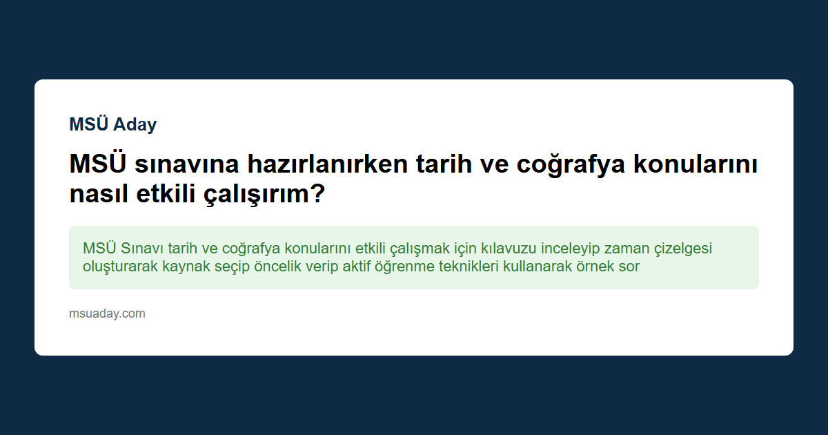 Millî Savunma Üniversitesi Askerî Öğrenci Aday Belirleme Sınavı (MSÜ Sınavı) için tarih ve coğrafya konularını etkili bir şekilde çalışmak, sınav başarınızı doğrudan etkiler. Aşağıdaki adımlar, bu iki disiplini sistematik ve verimli bir biçimde öğrenmenize yardımcı olacaktır.