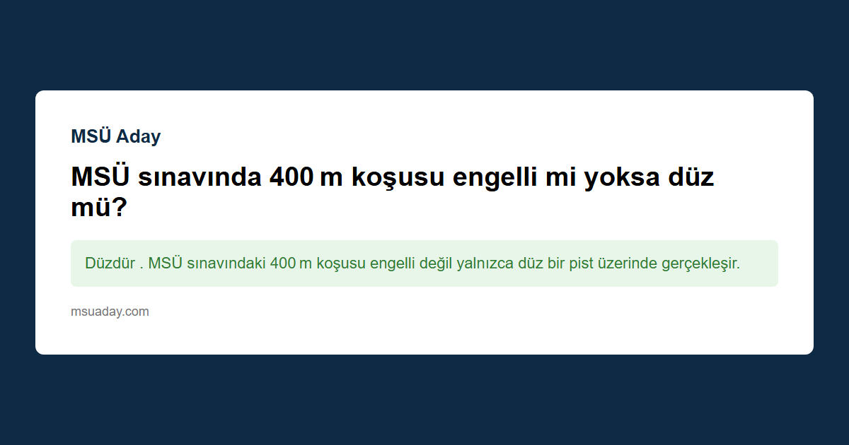 Kısa cevap: Düzdür . MSÜ sınavındaki 400 m koşusu engelli değil yalnızca düz bir pist üzerinde gerçekleşir.