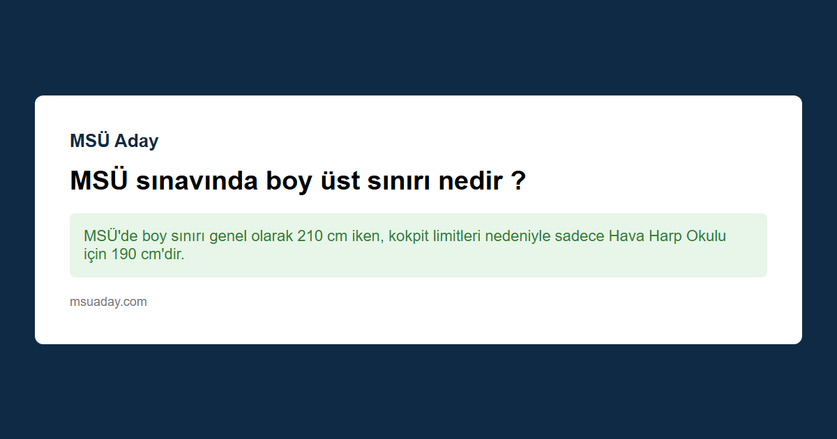 Kısa cevap: MSÜ'de boy sınırı genel olarak 210 cm iken, kokpit limitleri nedeniyle sadece Hava Harp Okulu için 190 cm'dir.