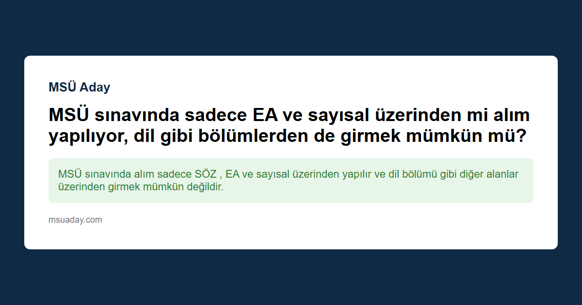 Kısa cevap: MSÜ sınavında alım sadece SÖZ , EA ve sayısal üzerinden yapılır ve dil bölümü gibi diğer alanlar üzerinden girmek mümkün değildir.