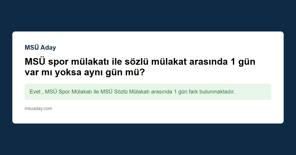 Kısa cevap: Evet , MSÜ Spor Mülakatı ile MSÜ Sözlü Mülakatı arasında 1 gün fark bulunmaktadır.