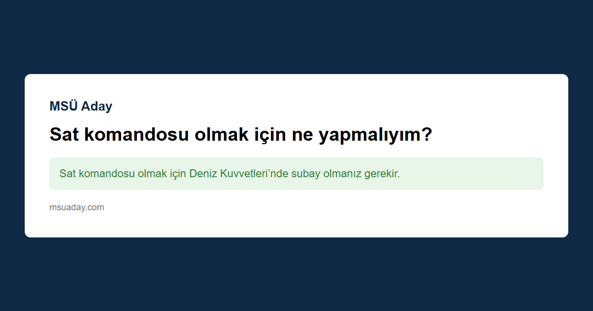 Kısa cevap: Sat komandosu olmak için Deniz Kuvvetleri’nde subay olmanız gerekir.