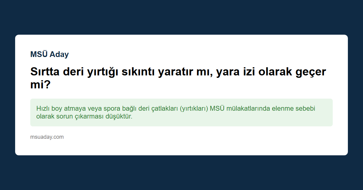 Hızlı boy atmaya veya spora bağlı deri çatlakları (yırtıkları) MSÜ mülakatlarında elenme sebebi değildir. Gönlünüz ferah olsun.