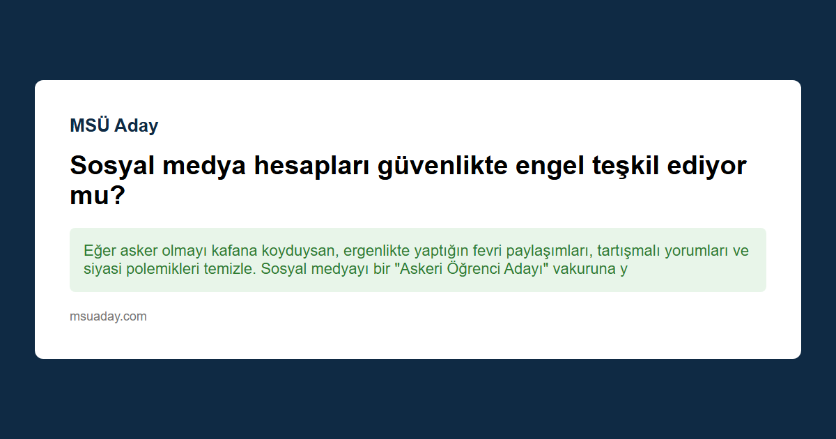 Kısa cevap: Eğer asker olmayı kafana koyduysan, ergenlikte yaptığın fevri paylaşımları, tartışmalı yorumları ve siyasi polemikleri temizle. Sosyal medyayı bir "Askeri Öğrenci Adayı" vakuruna yakışır şekilde kullanabilirsin