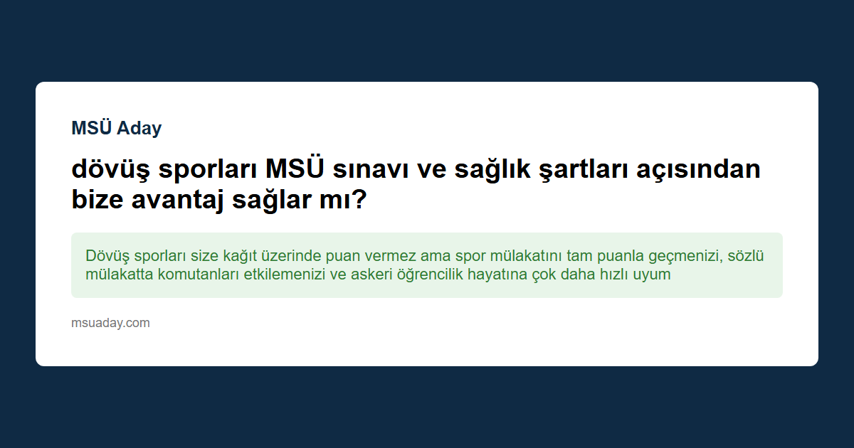 Dövüş sporları (Karate, Taekwondo, Kick Boks, Judo, Güreş vb.) ile uğraşıyor olmanız, MSÜ sürecinde size doğrudan bir "ek puan" getirmez; yani sınav puanınızın üzerine 5-10 puan eklenmez. Ancak sürecin işleyişinde, özellikle mülakatlarda ve eğitim hayatınızda size dolaylı ama çok güçlü avantajlar sağlar.