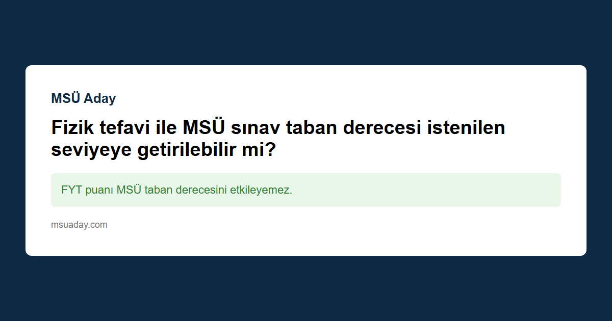 Özetle, FYT ile MSÜ taban derecesi istenilen seviyeye getirilemez; taban derecesinin yükseltilmesi için MSÜ‑TYT puanının artırılması gerekmektedir. FYT ise sadece fiziksel yeterlilik sürecinde bağımsız bir kriterdir.