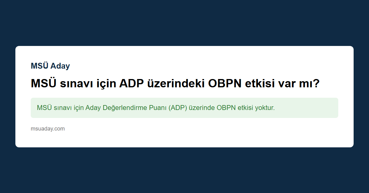 Kısa cevap: MSÜ sınavı için Aday Değerlendirme Puanı (ADP) üzerinde OBPN etkisi yoktur.