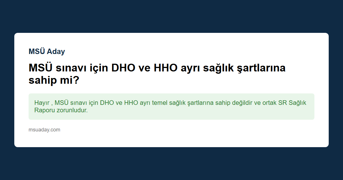 Kısa cevap: Hayır , MSÜ sınavı için DHO ve HHO ayrı temel sağlık şartlarına sahip değildir ve ortak SR Sağlık Raporu zorunludur.